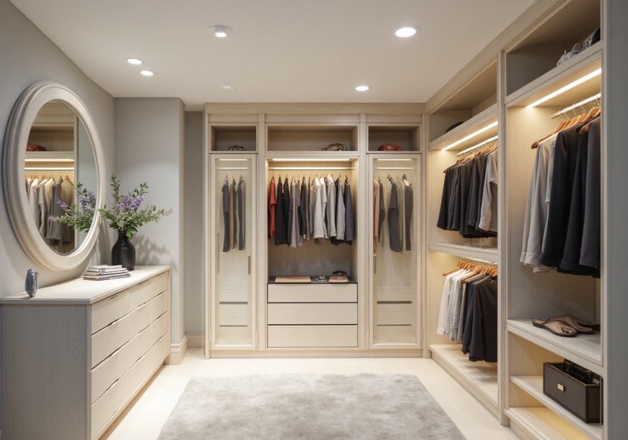 Важно также учесть высоту хранения. Для верхней одежды и аксессуаров используйте высокие полки, в то время как нижние ящики могут содержать обувь или нижнее белье. Открытые стеллажи также добавляют изюминку в интерьер, что делает ваш гардероб более стильным и современным.