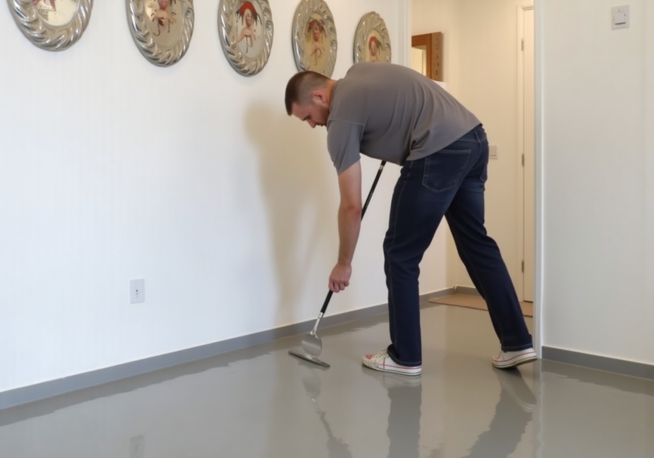 Первым делом обязательно проверяют прочность и чистоту основания, устраняют пыль, остатки старых покрытий и масла. Для повышенной адгезии поверхность часто покрывают грунтовками — это обеспечивает лучшее сцепление смеси с основанием и исключает воздушные карманы.