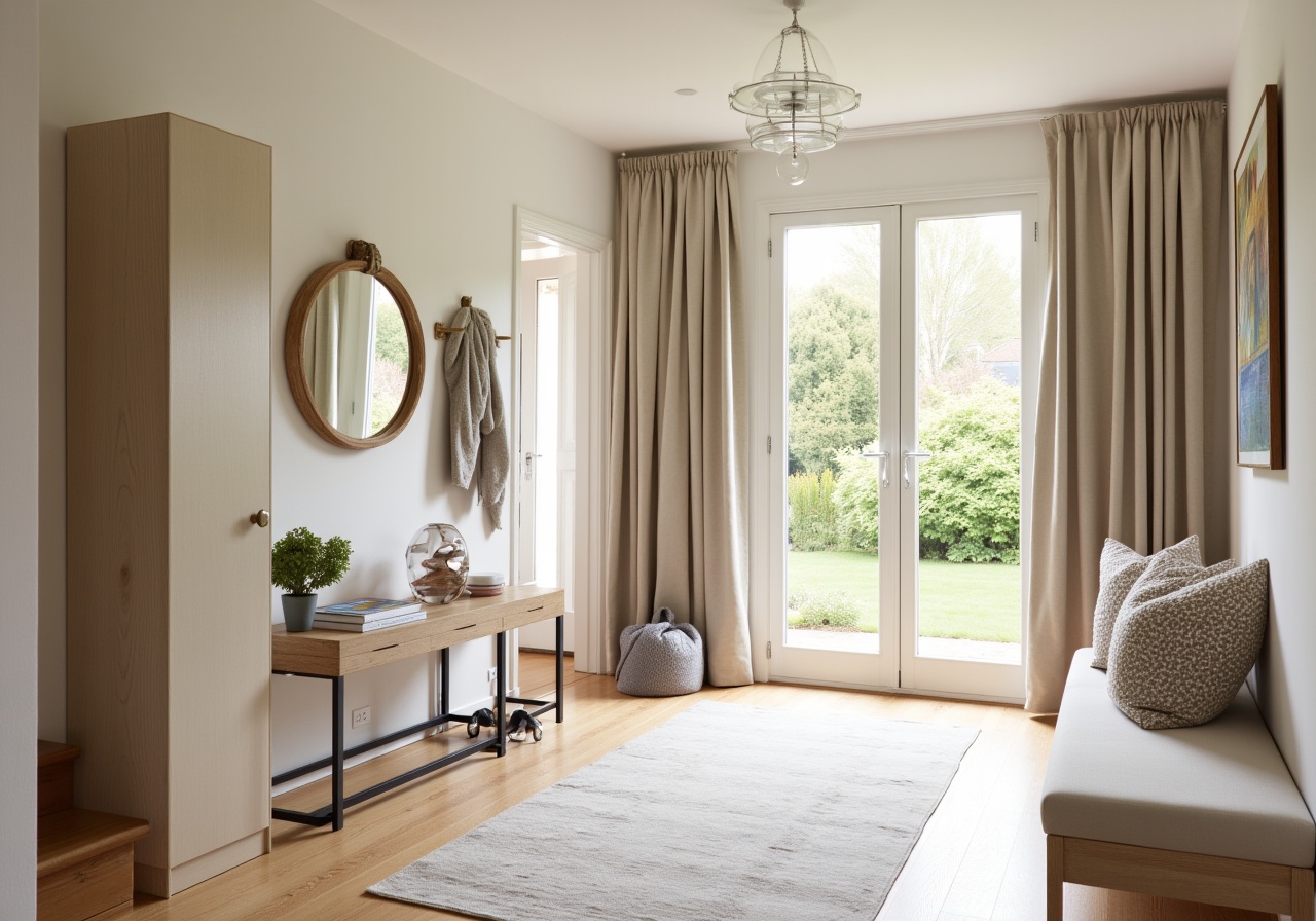 Прихожая – это не только место для вешалок и обуви. Она может включать в себя функциональную мебель, такую как скамейки или пуфы. Также стоит обратить внимание на шкафы-купе с зеркальными дверцами. Они идеально решают проблему хранения и визуально увеличивают пространство.